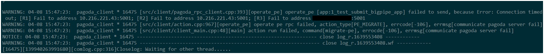 注意: 连接超时不是RPC超时,RPC超时打印的日志是"Reached timeout=..."。