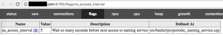 BNS是百度内常用的命名服务,比如bns://rdev.matrix.all,其中"bns"是protocol,"rdev.matrix.all"是service-name。相关一个gflag是-ns_access_interval: