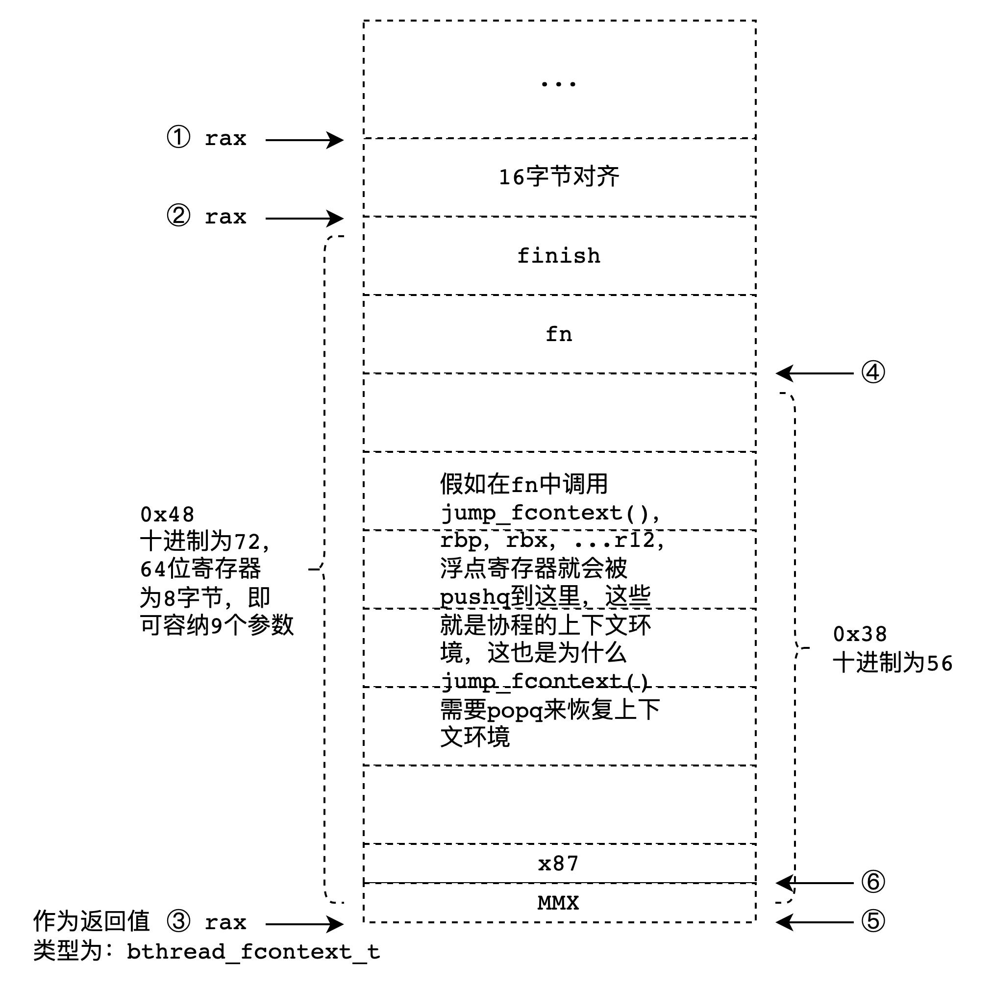 ret | rax就是上述的基点(栈顶),返回的类型为fcontext_t |