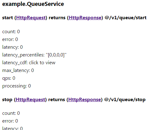 上面代码中AddService的第三个参数分了三行,但实际上是一个字符串。这个字符串包含以逗号(,)分隔的三个映射关系,每个映射告诉krpc:在遇到箭头左侧的URL时调用右侧的方法。"/v1/queue/stats/*"中的星号可匹配任意字串。